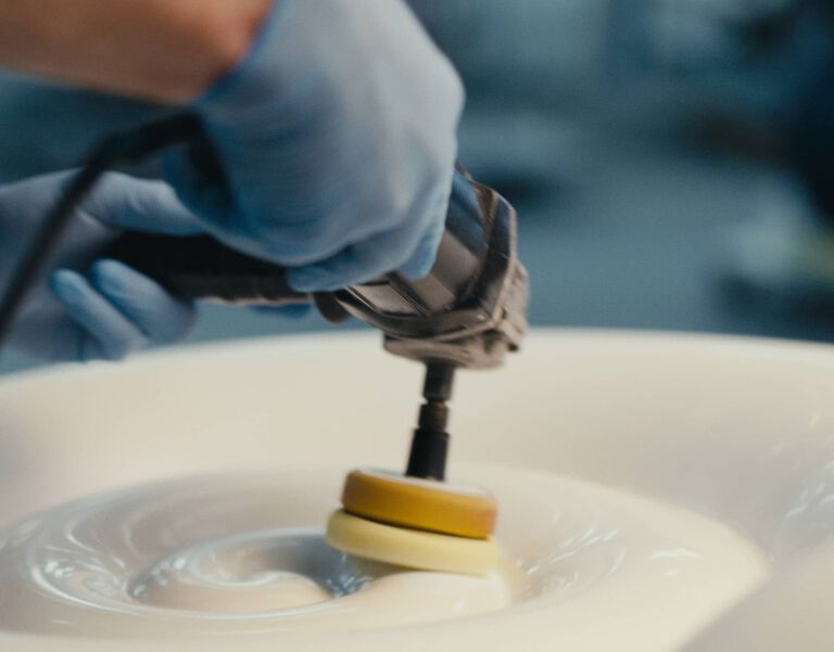 Once Nautilus is sprayed by hand by Dave Funnell, it's left to dry before it's time to hand over to Nick Curling, our Nautilus Polisher, who has worked on this loudspeaker design for over seven years. Nick spends hours carefully polishing the shimmering exterior to mirror-like perfection. Bringing excellent sound quality to the carefully crafted design, Darren Evans, another Nautilus Builder, constructs the physical speaker from the elements provided by Rob, Alfie, and the dedicated team who make the four drive units for each speaker.