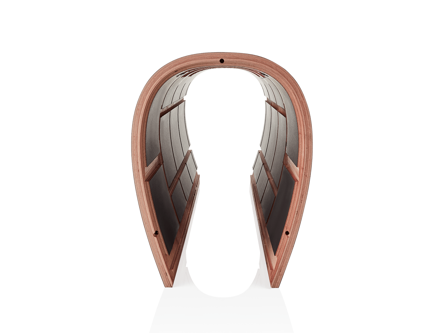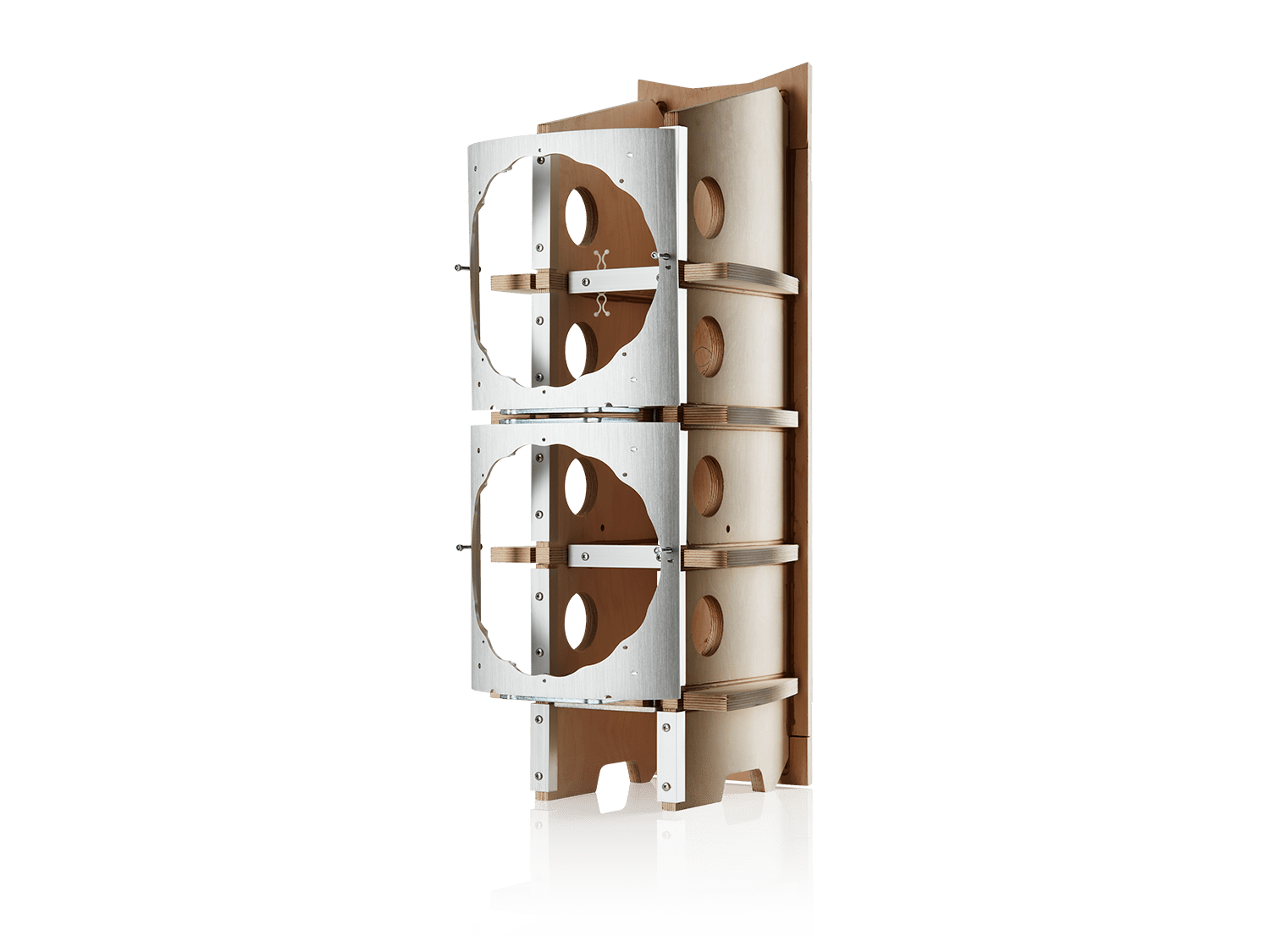 Instead of a conventional loudspeaker box, our cabinets are made from a continuous curved section of wood, with the drive units mounted at the heart of the curvature. This stiffer, more inert structure resists mechanical resonances far better and also ensures better dispersion of sound.