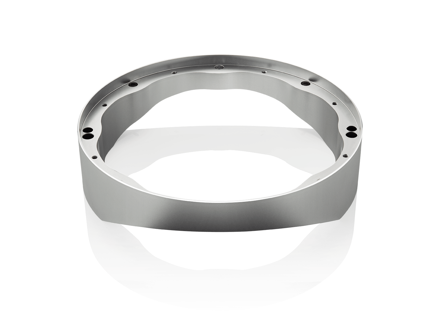 803 D4 mounts two Aerofoil™ bass cones in twin solid aluminium bass pods, each of which is clamped into an aluminium plate fixed to the stiffest part of its curved cabinet. Formed as single pieces of metal, these stiff structures provide the perfect mechanical location for those powerful bass cones.